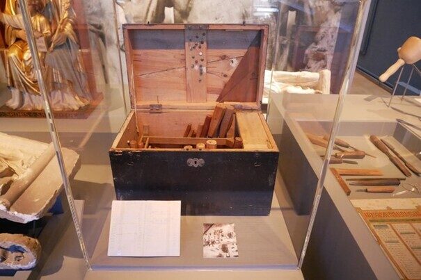 Centraal in deze ruimte staat de gereedschapskist van beeldhouwer Gerardus van Helden. Hij startte op 17 november 1920 in het atelier Cuypers & Co, dus in de tijd dat Joseph Cuypers aan het roer van het bedrijf stond. In de kist zitten zijn beitels, gutsen, een passer, schietloodjes, winkelhaken en meetlatten. De beitels in de kist zijn gemerkt met GvH en GH, zodat het duidelijk was dat het zijn gereedschap was. Elke werknemer nam namelijk zijn eigen gereedschap mee.