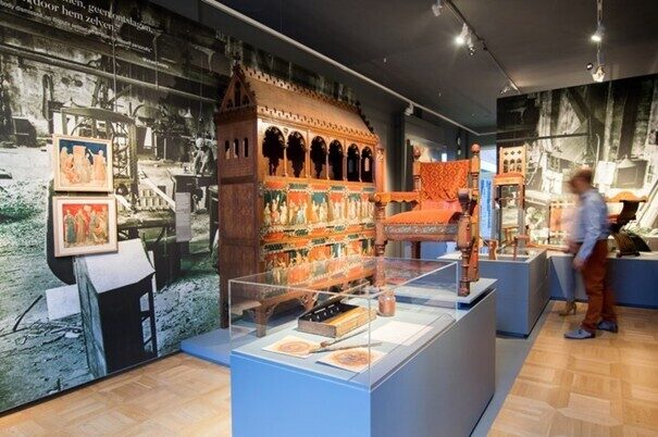 Een topstuk in de collectie van het Cuypershuis. Niet alleen door zijn omvang valt hij op, maar vooral ook door de prachtig beschilderde voorstellingen op de deuren. In ‘object met een verhaal’ staat deze keer de door Pierre Cuypers ontworpen archiefkast centraal. De kast heeft de vorm van een gebouw. Hij wordt afgedekt met een dak met daaromheen een rand van kantelen. Daaronder bevindt zich een soort dwerggalerij met ronde bogen. De eigenlijke kast, afsluitbaar met 12 beschilderde deuren in twee rijen boven elkaar, bevindt zich weer daaronder. De vorm is geïnspireerd op een middeleeuws voorbeeld, namelijk de sacristiekast in de Kathedraal van Noyon.